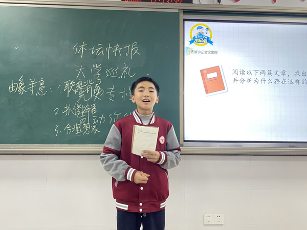 课上进行了团长与副团长竞选,在竞选演讲过程中,小记者们不卑不亢、落落大方的进行自我介绍,大胆毛遂自荐期望获得同学们的投票。最后在所有小记者的共同见证下,票数最高的小记者陈禹希当选本届校园记者团的团长,同时黄文彦当选记者团的副团长。