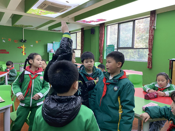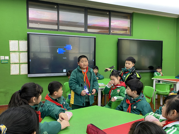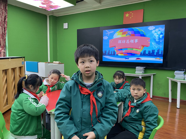 随后,社团老师通过漫画、图片和材料帮助小记者们了解记者采访的情景以及两国对教育的不同理念。课堂上小记者们模拟了对曾时任美国驻上海总领事谭森进行访谈,在老师的带领下,小记者们落落大方的走上讲台,开启了与谭森先生的“跨时空”对话,感受采访情景,还通过对采访案例中小记者们对谭森先生的提问的总结,帮助小记者明确在生活中的一些学习和生活体验常常会影响我们对一些事件的看法。