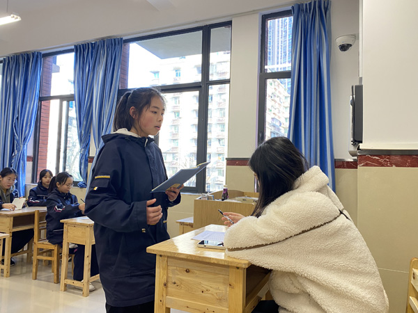 同学们陆续来到面试现场等待面试开始。面试现场,老师在仔细阅读学生笔试文章的同时也会向报名同学提出相关问题“为什么想要加入校园记者团”“你眼中的记者是什么样的”“你认为校园小记者是做什么的”同学们面对老师的提问侃侃而谈,讲出自己加入校园记者团的无限遐想,展现了第六十八中学学子的风采。