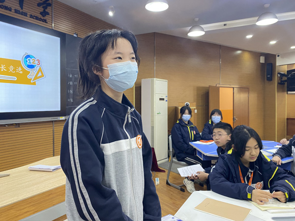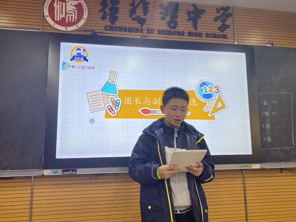 课堂主体:首先,课上进行了团长与副团长竞选,在竞选演讲过程中,小记者们不卑不亢、落落大方的进行自我介绍,大胆毛遂自荐期望获得同学们的投票。最后在所有小记者的共同见证下,票数最高的小记者田俊熙当选本届校园记者团的团长,冯镜霖当选为副团长。