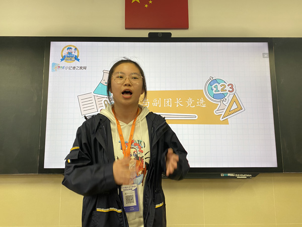 首先,课上进行了团长与副团长竞选,在竞选演讲过程中,小记者们不卑不亢、落落大方的进行自我介绍,大胆毛遂自荐期望获得同学们的投票。最后在所有小记者的共同见证下,票数最高的小记者唐睿涵当选本届校园记者团的团长,舒梓洋当选为副团长。