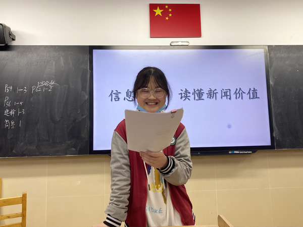 本次课上小记者们总体表现优异,大部分同学能紧跟老师思路开展课堂讨论,特别是周倩、宋佳睿、叶倩如、余康乐等同学积极举手发表自己的观点和见解。