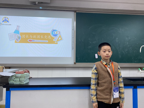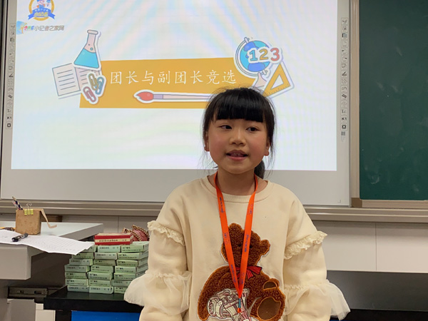 课堂主体:首先,进行了团长和副团长的竞选,在竞选演讲过程中,小记者们不卑不亢、落落大方的进行自我介绍,大胆毛遂自荐期望获得同学们的投票。