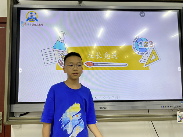 随后,进行了社长的竞选,在竞选演讲过程中,小记者们不卑不亢、落落大方的进行自我介绍,大胆毛遂自荐期望获得同学们的投票。最后在所有小记者的共同见证下,初一年级王禹棋、初二年级冯子轩当选为本社团的社长,将在后续的社团活动中带领小记者们变得更优秀。
