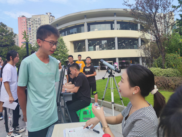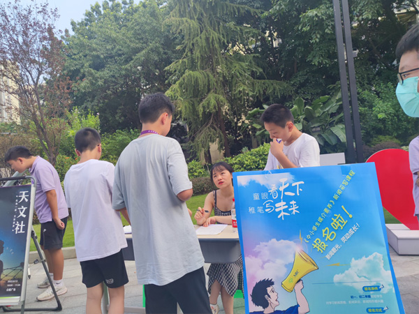 9月13日当天,选拔校园小记者的老师提前来到现场,同学们也陆续拿着报名表选择自己心仪的社团。社团招新现场,许多同学对小记者社团进行了咨询和选择,同时社团老师也会向报名同学提出相关问题“为什么想要加入校园记者团”“你眼中的记者是什么样的”“你认为校园小记者是做什么的”“如果你已经是一名校园小记者了,你认为学校的那些事件或活动可以进行新闻调查,并形成数据新闻报告”同学们面对老师的提问侃侃而谈,讲出自己加入校园记者团的无限遐想,展现了南渝中学学子的风采。