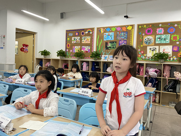 课前预热:首先,课上进行了团长与副团长竞选,在竞选演讲过程中,小记者们不卑不亢、落落大方的进行自我介绍,大胆毛遂自荐期望获得同学们的投票。最后在所有小记者的共同见证下,四年级八班的廖敏涵和三年级五班的张子彦小记者当选为小记者社团的团长和副团长。