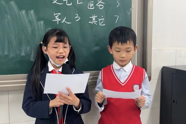 课堂上,校园记者团老师通过让同学们模拟新闻播报的方式知道新闻播报的重点和难点,同时还让小记者们思考,遇到意外情况应该如何处理,小记者们也积极说出了自己的想法,随后,课堂上为小记者布置了课后小任务,收集近期校园新鲜事,按照课堂所学的新闻播报材料的处理方法进行整理,在下节课上同学们以新闻播报形式来进行分享。