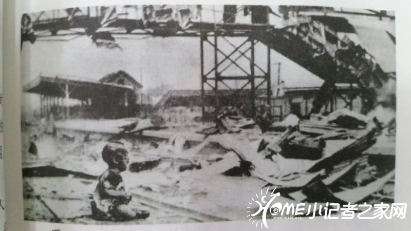 伴随着“轰隆隆,轰隆隆”一阵阵震耳欲聋的爆炸声,上海火车南站化为了废墟:候车室没了,建筑物倒塌了,铁轨被炸断了,火车被炸毁了。一个看起来年仅两三岁的小孩在轰炸中奇迹般地存活了下来,他衣衫褴褛,惊恐万分。绝望地大哭着,一边哭一边大声叫着:“爸爸妈妈你们在哪儿?”,“爸爸妈妈不要离开我,我好害怕,你们救救我呀”……,他那满是鲜血的脸被泪水冲出了一道道痕迹,望着周围的废墟和吓人的尸骨,哭得更加伤心了。