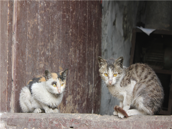 回到老家的院子里,两只小猫蹲在门槛上,两双晶莹透黄的眼眸在春光下越发清澈纯粹,纤尘不染。它柔软的腰肢下摆动着曲弯的细尾,凌厉的外表陡然变得灵动绞柔。另一只猫在木板上不住地划上划下,很像一个专业的运动选手在反复训练自己。似乎乡间的猫都是有野性的,我从未有机会抚摸它们。它们有这偌大的天地,自然不会心安于日复一日的爱抚喂食。