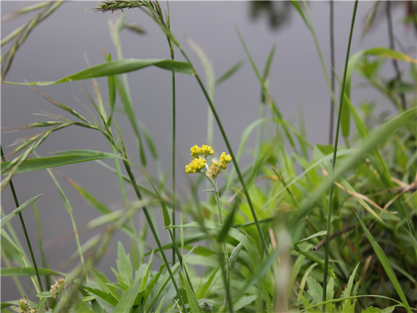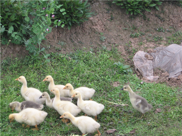 随手蹦跳拿着几支狗尾巴草和黄蕊野花,裤子上粘了好多苍耳,连一起玩的小狗也满身都是,一人一狗两个家伙坐在山坡上,理清身上的草叶花粉,我不时摘些带着露水的青草给它吃,它却撇头用舌去细舔那水洼里澄净的水,好不顽皮。“嘤嘤嘤...”稚气小巧的声音让我心里融化成团,毛茸茸的奶黄小团蹒跚学步,凌厉的小脑袋不时点地觅食。田里有的是好吃的,这里草木杂生,可知土地很肥沃,你们就尽管找吧...我除了心里默默地感叹,就只能默默目送小鹅成群地往家里赶,那天间的豌豆花也心里暖得润开了粉紫的花吧。