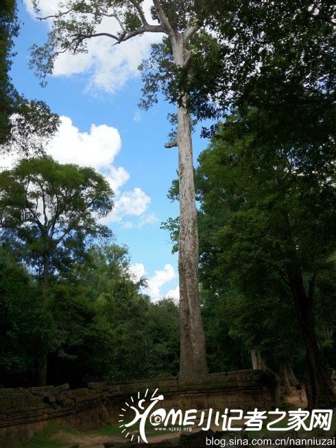 大吴哥窟就像迷宫一样出奇的大,里面还有好多佛像。而小吴哥窟的雕像也十分精致,但仍有侵略者不文明的刻画。终于到了我最好奇的景点——空心树。空心树直直的,在阳光的照射下,空心树更为壮观。