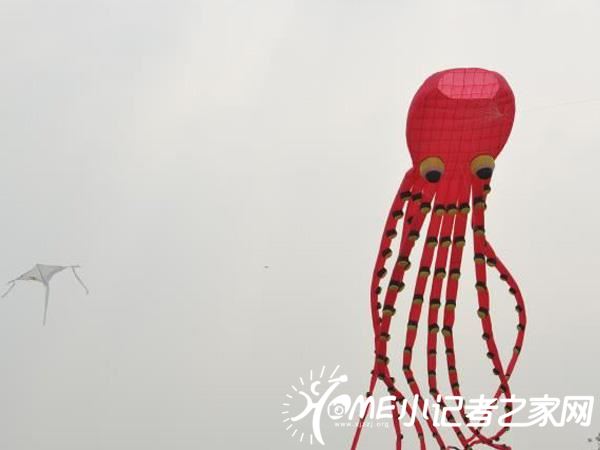 这次风筝节请来了好多国内外专业放风筝的伯伯和叔叔,他们根据风速的大小,先后放飞了龙形风筝、蛇形风筝、鱼形风筝、企鹅风筝以及章鱼风筝等等,全部都是十几米长的巨型风筝。最特别的还要数由上千个小风筝连接起来长达五、六百米的“空中芭蕾”风筝,它飞得很高,我已经看不见它的尾巴了。听放飞它的伯伯说,如果风够大,它可以飞到两千米高,真是太真厉害了!