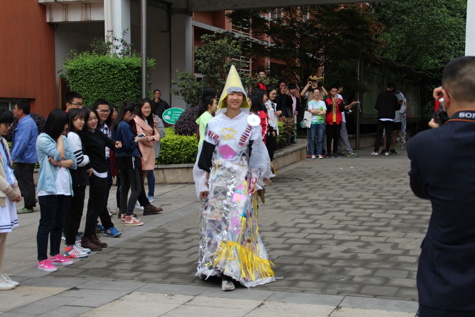 环保时装秀上来自高一八班的模特,以环保、青春、活泼的形式出秀