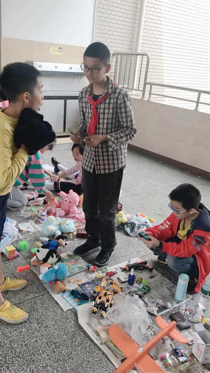 最积极的就是我们的“跳蚤市场”了。中午午餐时间,有的同学已经迫不及待的摆开了“铺面”。大家吆喝着:“卖东西啦!”“走过路过千万不可错过”“打折了”走廊两旁摆满了各式各样的商品,有书本、笔墨、发夹、项链、花草,甚至还有卖小仓鼠的,可谓是应有尽有。同学们有的大声叫卖,有的楼上楼下“上门”推销,有的害羞地守在地摊前等候顾客,校园仿佛变成了市场。