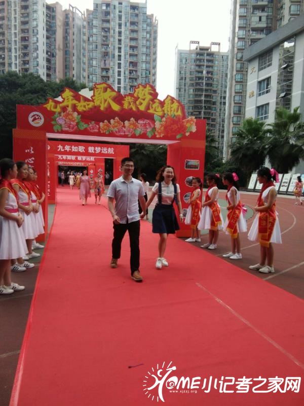 紧接着,九年级的同学们围着超操场昂首阔步的走了一圈。假如这操场就是他们以后的人生道路,希望他们也能如今天这般昂首挺胸的面对生活。 九年级的同学捧着自己的梦想,和家长们手牵着手走过了长长的红毯。这虽然是个欢乐的日子,和同学们的脸上或心里还藏着丝丝沉重,即将与朝夕相处三年的同学和老师们分离,十分不舍。