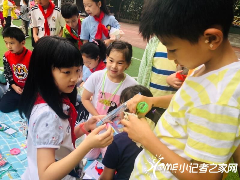 义卖的时间为早上7:30-8:40,虽然时间早且只有一个小时,但是参加活动的同学们个个热情洋溢、兴致勃勃。他们早早的就来到了学校,带来了各式各样的义卖品:有玩具、文具、体育用品、课外书等,更有同学把自己珍藏的礼物也带到了现场义卖!