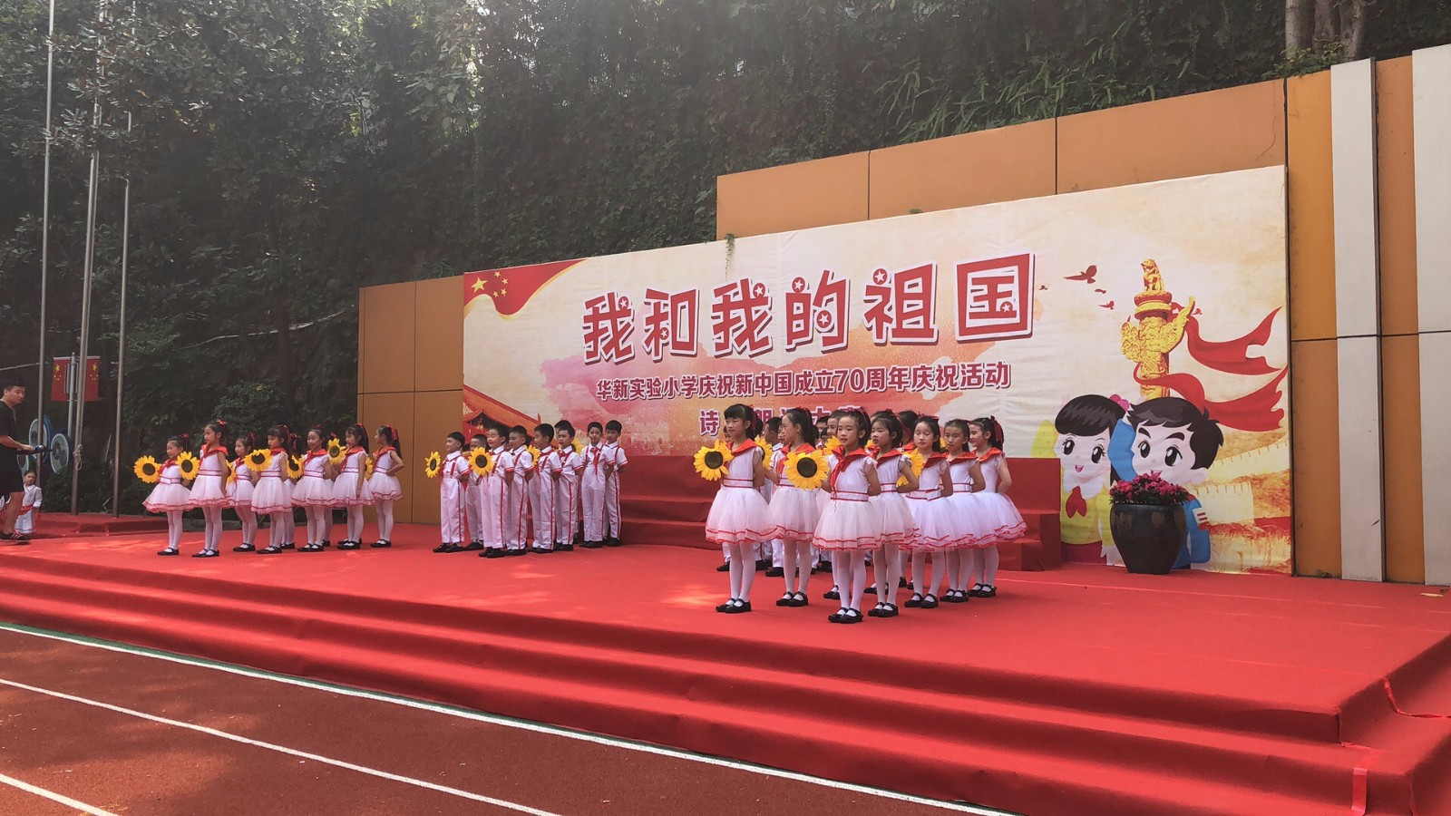 小记者之家网10月3日电(小记者 钱泓颖)为隆重庆祝中华人民共和国成立七十周年,2019年9月30日上午9时,华新实验小学校举行了“我和我的祖国”主题诗歌朗诵大赛。全体师生齐聚操场,配戴鲜艳的红领巾,精神饱满、风姿飒爽、整齐有序,尽显华新学子阳光自信的精神风貌。