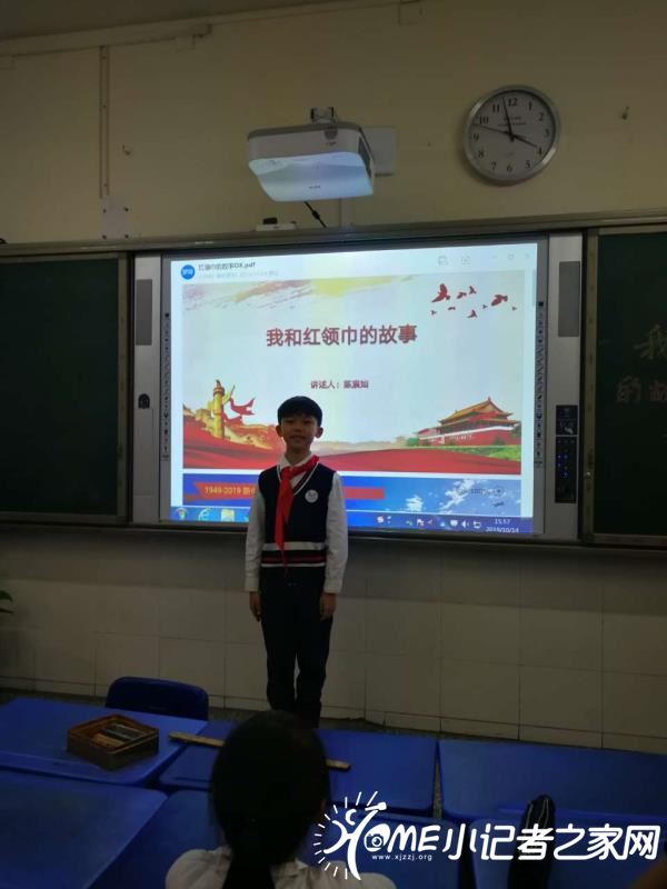 班队活动当天,在各班班主任的带领下同学们带来了自己收集和准备分享的资料,并做成了PPT文件。同学都踊跃上台分享,开启了自己当“小老师”的模式。活动中大家都各抒己见,发表了自己的看法,畅谈了自己梦想,还讲述很多关于红领巾的小故事。有的同学讲述了被关押在渣滓洞的最后英勇就义的“江姐”江竹筠的故事,有的同学介绍了关于中华人民共和国少年先锋队的来历、教大家正确的系红领巾的方法、还带领大家齐唱队歌,还有的同学介绍了自己的亲人如何为新中国成立和建设作出伟大贡献的故事。在整个分享活动中,最让大家感动、让大家印象最深刻的是其中一位同学分享了一位和我们同龄,新中国、乃至世界上最年轻的烈士“小萝卜头”的故事。故事告诉了我们:他如此小,并且在如此艰苦的条件下还要一边努力学习,一边和敌人做斗争。让我们深深的感受到了新中国的成立来自不易,我们能有现在那么好的生活条件来之不易,我们更应该发愤图强努力学习,为祖国的建设作贡献。
