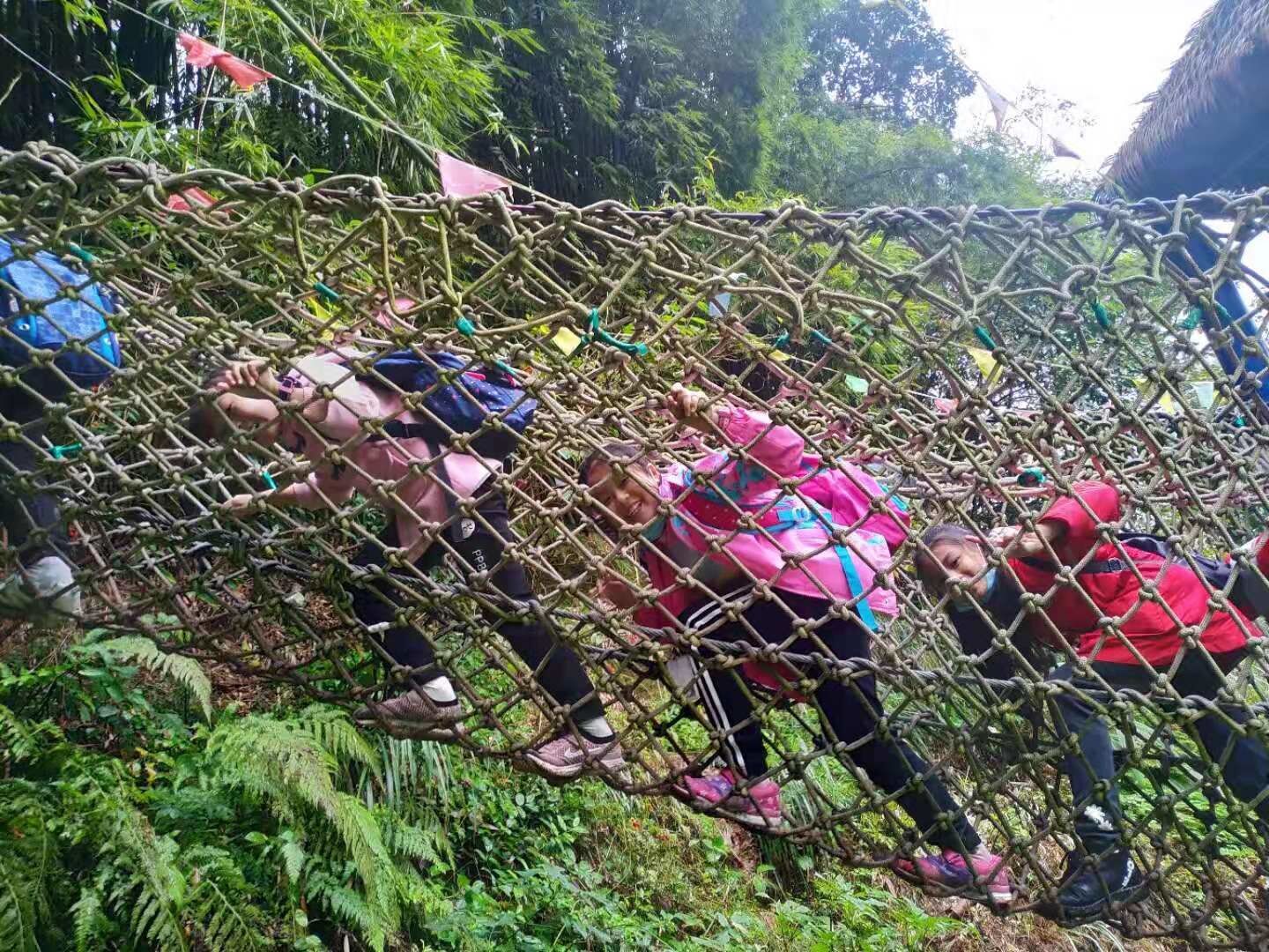同学们早上从学校整队出发,一路上细雨绵绵,天空阴沉沉的,不过这似乎并没有影响同学们愉快的心情。很快便到达圣灯山“熊猫亲子庄园”,同学们在教官的带领和指导下,兴致勃勃地参加了各种有趣的游戏和活动。