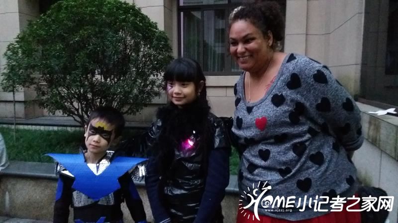 这儿是国际学校,有好多外国的同学,因为小记者装扮成女巫的缘故,一位外籍老师对小记者说:“You are a witch, I am a witch, and we are friends. ”