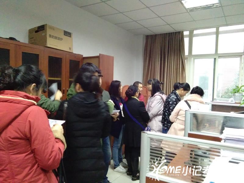 家长们在课任老师办公室询问孩子的成绩和学习情况