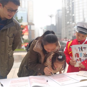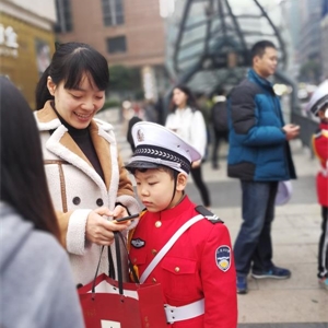 近日,12月2日,在2017年“12.2全国交通安全日”活动当天,江北区新村同创国际小学在观音桥商圈广场开展“中国梦●文明行——我是江北小交警’”活动。(新村·同创国际小学 牟晋旗)