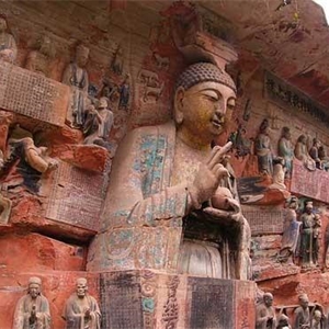 大足石刻位于重庆市大足区宝顶山上,是世界八大石窟之一、世界非物质文化遗产,享有“东方艺术明珠”的美誉。而且是中国晚期造像艺术的典范,规模之宏大,艺术之精湛,内容之丰富。