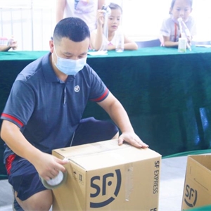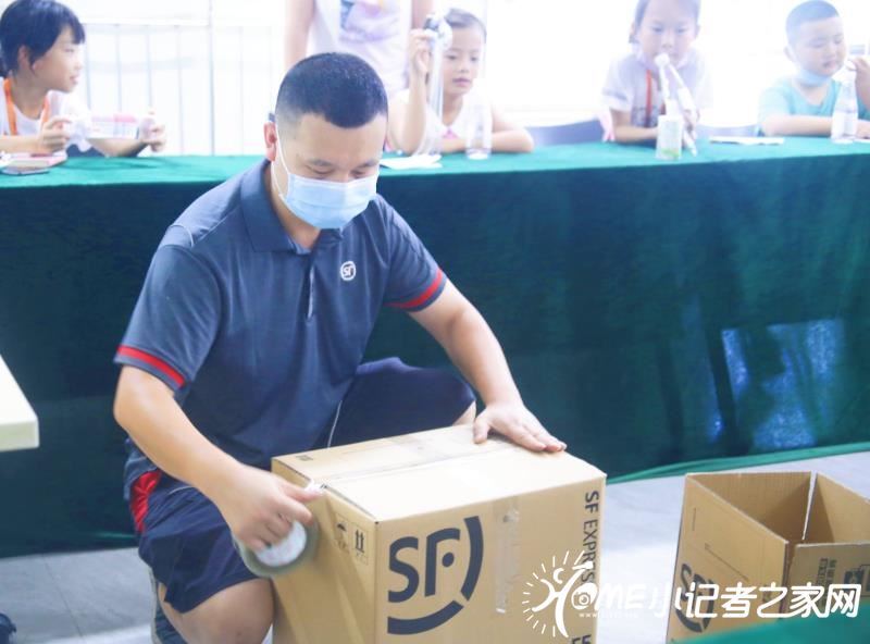 参观结束后,快递员带来了顺丰新型循环快递箱π-box,并现场模拟了快递包装的过程。他表示这种快递箱可循环使用,节约了纸资源。同时,快递箱采用单一化材料pp蜂窝板材,该材料防水、隔热,保证了快递的安全。未来几年,π-box快递箱将全面应用在快递运输当中。