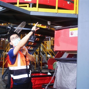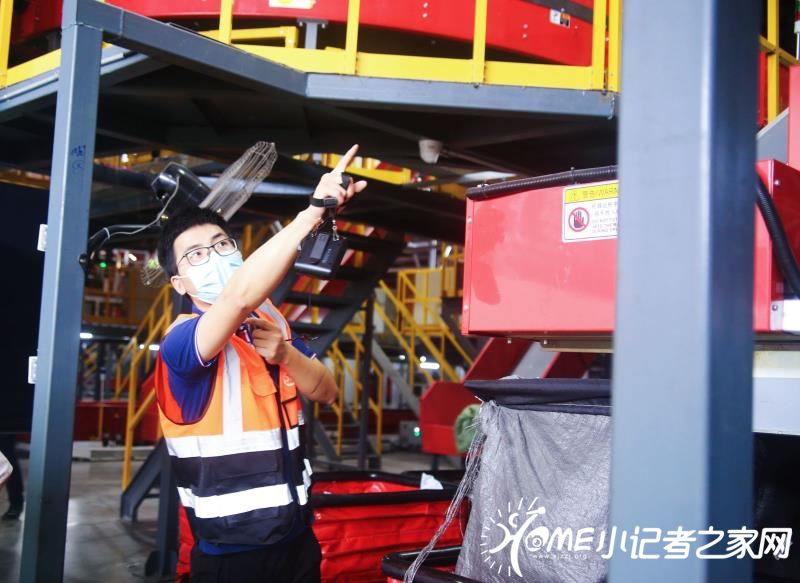 同学们跟随快件集散中心经理张武来到快递分拣场地。张经理讲解了不同的分拣模式:形状规整的大件可以直接利用机器进行全自动分拣;小件包裹是在小件分拣机上进行;第三类是不规则件,则采用线下人工进行分拣。张经理表示:“机器有高灵敏度的分辨系统。系统直接扫描就可以进行分类处理,这提高了快递处理的工作效率。机器与人工结合的分拣模式,保证了快递分拣的准确率。”
