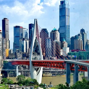 重庆有山有水,长江和嘉陵江在山城间穿行。重庆大剧院坐拥江景,铜锣山矿山公园积雨的矿坑幽蓝荡漾水清清,万州大瀑布声声怒鸣,岐山草场绿草如茵,长寿湖碧波千顷,长江索道自在滑行,东水门大桥桥宽路平,洪崖洞灯笼顶顶,仙女山草木葶葶,别墅旁水蓝天青。