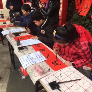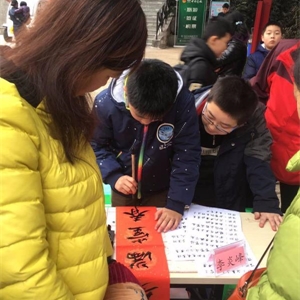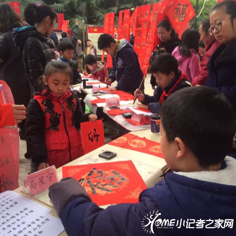 2017年1月18日上午10时,重庆市两江新区金山街道在奥林匹克花园四期进行义务写春联送春联活动。一群来自金山小学的书法老师和小书法家们个个挥舞着手中的毛笔,兴致勃勃地表演着自己的拿手好戏。不一会儿围观的社区居民越来越多,场景十分火爆,但喧闹的声音却并没有丝毫影响到小书法家们的状态。