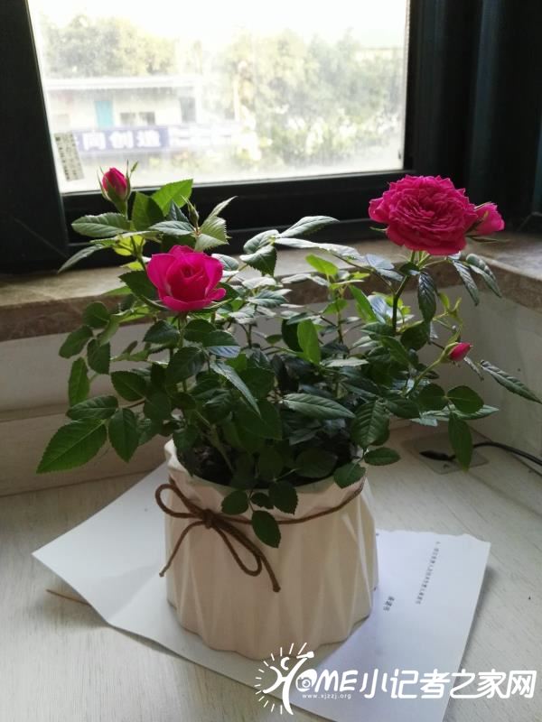 阳光明媚的一天,我家迎来了一位新朋友——一盆美丽的月季花。