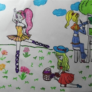 春风拂面,小朋友们都脱下了厚厚的棉袄,穿上了漂亮的春装。有的在草地上跳着欢快的舞蹈,有的在草地上画着春天美丽的景色,有的在草地上采着漂亮的花儿。春天真美啊,整个春天就是一个五彩的世界!(鱼洞第四小学 孙婉甯)