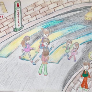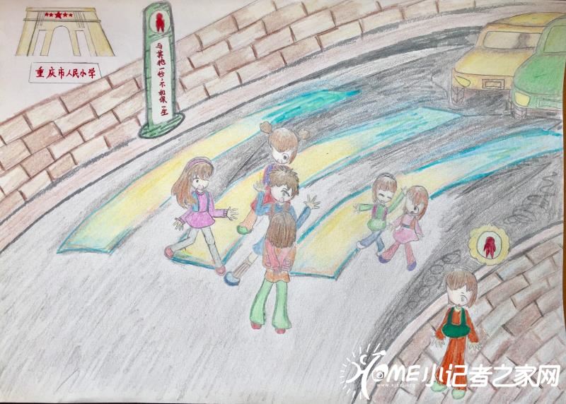 大清早,同学们背着书包,准备过马路。斑马线上一群又一群的小学生们瞧都不瞧红绿灯,径直走向学校。学校规定不可以迟到,但迟到的一分钟重要,还是自己的生命重要呢?(重庆市人民小学校 李昱欣)