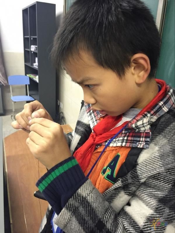 一周一节的劳技课时间又到了。这节课的主题是“穿针引线 感恩父母”。同学们开始跃跃欲试,信心满满,觉得这有什么难的?可是,线一到手上,却怎么也不听使唤,就是不进针眼,这可难倒了我们班的孩子们。瞧,他们比赛时在台上目不转睛的样子,看来母亲也不易呀。孩子们情不自禁地吟诵起“慈母手中线,游子身上衣。临行密密缝,意恐迟迟归。谁言寸草心,报得三春晖?”是那么深情。此时,他们想起了自己的妈妈。