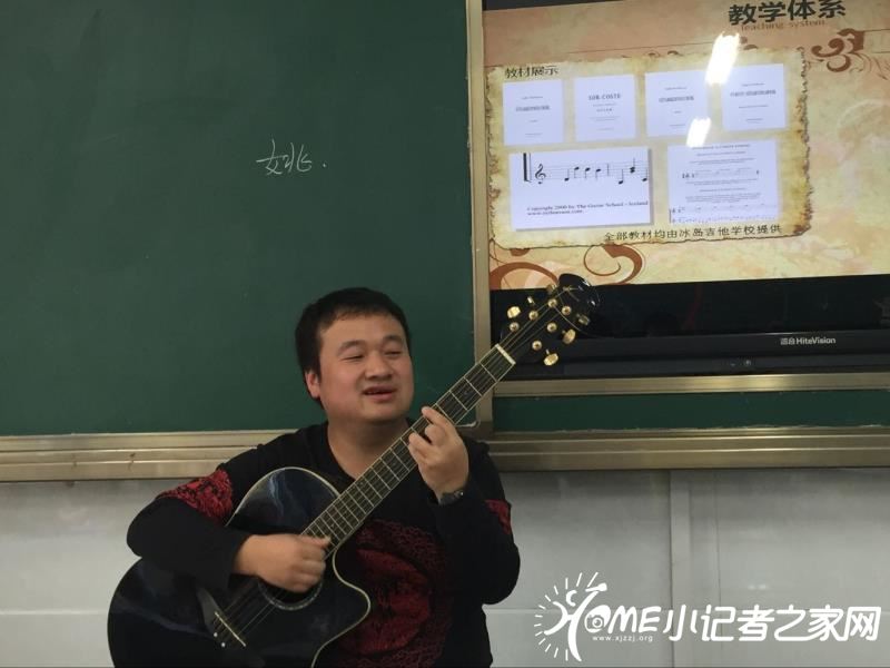 姚老师先用提问启发的方式给同学们介绍吉他的基本知识:吉他分民谣和古典吉他两种;吉他原本叫六弦琴,最早的琴弦是用羊的小肠制作;古典吉他因定型于西方音乐史的古典主义时期而得名……同学们热烈回应,兴味盎然。让同学们印象特别深刻的是,姚老师和大家探讨学好音乐的几大要素:“坚持、理想、汗水、想象和兴趣”,他告诫大家记住:“只有坚持下去,拥有理想,付出汗水,你才能感受到兴趣。所以兴趣并不是最好的老师,最好的老师是坚持!”