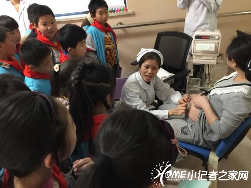 在参观过程中,同学们遇到了一位孕妇前来检查,通过仪器大家听到了小宝宝的心跳声,近距离感受新生命。此外,同学们还观看了新生婴儿洗澡和护理的过程,小宝宝在护士的精心看护下快乐地游泳、做体操。