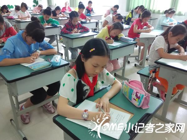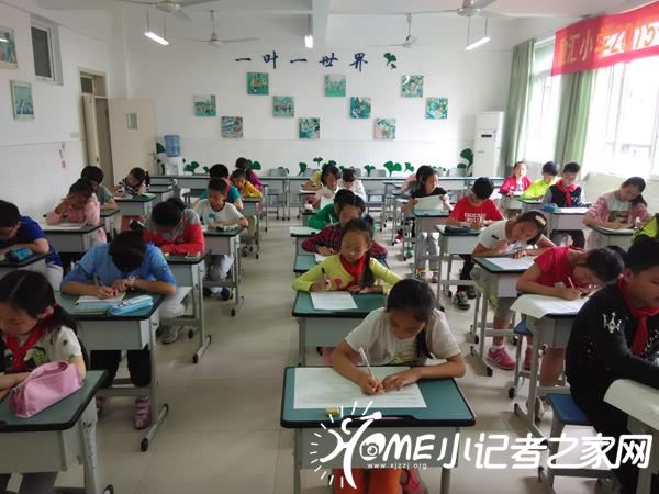 三年级(6)班的刘壁嘉在考试时不断的“打望”教室。原来她遇到了一道观察描写题,题目要求对教室内的环境进行描写。仔细观察后,她开始写:“在考试的房间里,有一幅美丽的画……”