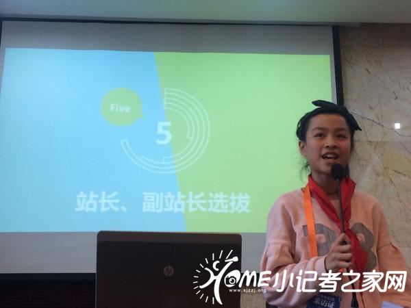 在大家轮流自我介绍后,就进入了龙山小学小记者站“站长”、“副站长”的选拔环节。竞选的小记者轮流上台进行了精彩的演讲,演讲后还需要接受其余小记者的提问。五年级一班的文筝演讲后,有一位小记者提问到,“如果平时有采访任务,你都会分配谁去采访?”针对于此,文筝小朋友从容不迫、镇定有序地回答道:“这就和现在竞选的情况一样了,谁有能力、谁更适合,我就会派谁去。”
