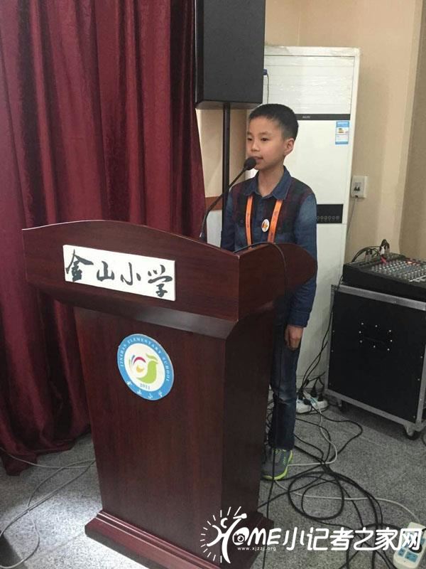 五年级一班的小记者张恒瑞正在进行竞选演讲