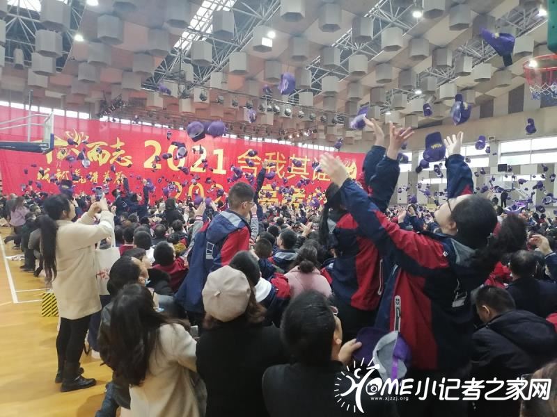 “誓师”环节。高三年级每班一名学生代表共同朗诵《十八岁的畅想》,各班进行宣誓、喊出班级口号。高三(8)班学生辛采钺说:“喊出口号的一瞬间心情非常忐忑,也有一种热血沸腾的感觉,这激励着我在以后的学习和生活中发愤图强。”随后高三全体师生共同传递“十八而志 2021舍我其谁 ;2021高考必胜”主题横幅。学生们以帽为梦,抛飞礼帽,让梦想高飞。