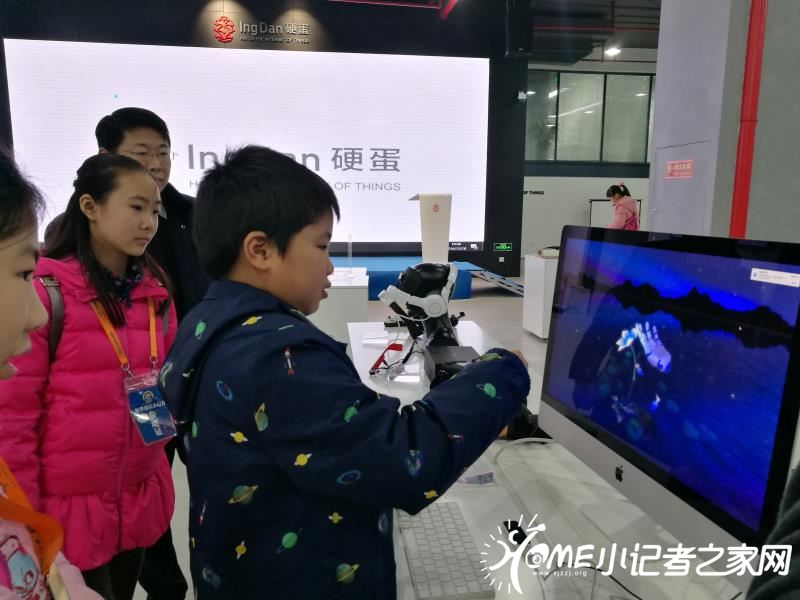 在前往硬蛋科技的途中,桃子老师向小记者们介绍了硬蛋科技的相关信息。硬蛋科技有限公司是中国最大的智能硬件创新创业平台。小记者们怀着强烈好奇到达了硬蛋科技,骆沙舟老师热情的接待了大家。骆驼老师首先带领小记者们参观展示大厅。宽阔的展示厅中,陈列着功能各异的高科技智能产品,其中的多数产品是大家初次见到,这令现场小记者们感到十分新奇。在展厅中小记者们体验了多种有趣的智能产品:一款能够为颜值打分的人脸识别软件、不用塞在耳朵内的钛骨传导耳机、可爱的阿尔法机器人,阿尔法机器人能够自由转动身体的各个关节,做出多种高难度动作,甚至跳出炫酷的舞蹈。小记者们在现场观看了阿尔法机器人做广播体操,它的动作比小记者还要标准。机器人产品中最令小记者们喜欢的是BB8圆球形机器人;它的原型是电影《星球大战》中的一员。骆驼老师还向小记者们介绍了最前沿的智能设备,如智能手环手表、智能按摩手套、智能水杯、可穿戴空气质量检测仪、肌肤检测仪、手机远程控制开关、磁悬浮音响、移动观影机等。小记者们还体验了平衡车、虚拟现实游戏等智能产品。通过了解与体验,小记者对影响未来生活的高科技智能产品有了全新的认识。