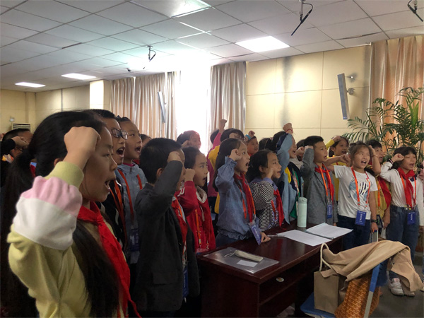 “我是翠云小学的学生,我志愿加入小记者队伍......”在本节课的最后,谢家湾小学小记者社团举行了成团宣誓仪式,小记者充满斗志地进行了宣誓,愿他们能做一个“校园的发现者、梦想的记录者、文化的传播者”。