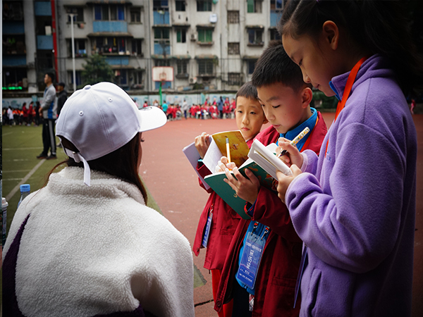 记者们积极采访同学、老师,认真记录活动精彩之处。