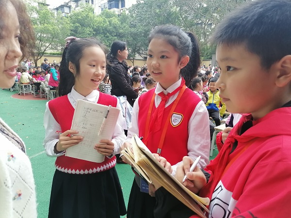 活动中,小记者们都积极深入到比赛现场,分别针对同学、老师、家长、评委、校领导等进行了不同的提问,整个过程组织有序。其中小记者王语轩、雷渝涵在自己办的比赛结束后也积极投入到采访当中,非常棒。