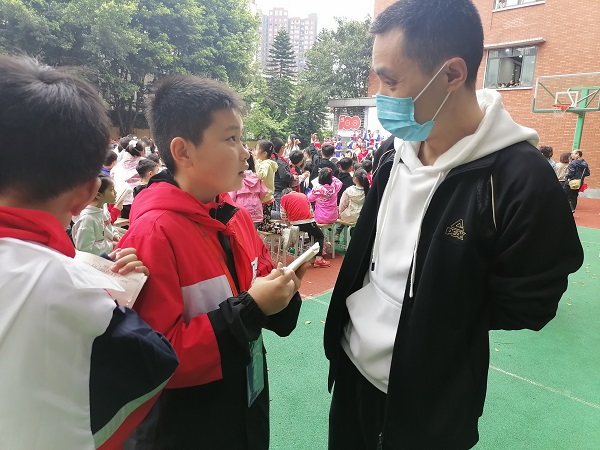 在校园记者团老师的带领下,小记者们深入到活动现场,认真观看比赛,捕捉现场细节,每位小记者分别针对自己所要采访的对象进行了采访。