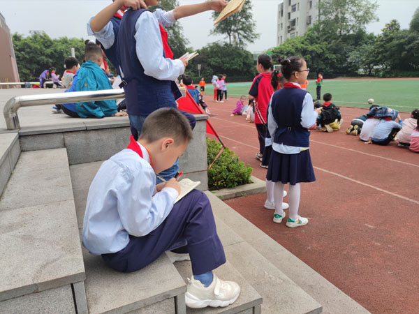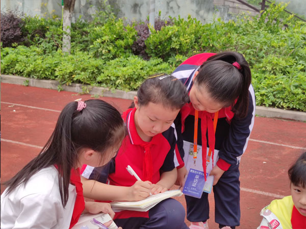 活动中,北大资源•鲤鱼池小学校园记者团深入到足球比赛现场,以参加活动、积极采访、小组合作等方式参与其中,对观赛的同学、参赛的足球运动员以及老师等进行了采访。