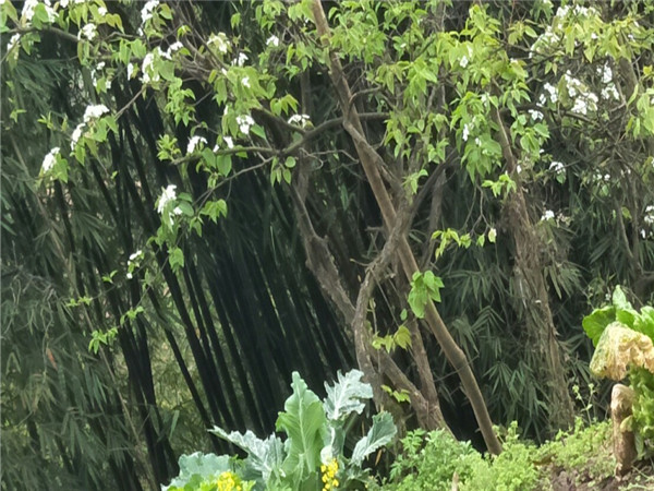 这四瓣的油菜花上刚刚停落了一只毛茸茸的蜜蜂,可爱的小蜜蜂是勤劳的,我看着它心里痒痒的,却又不敢伸手去惊扰它;草丛下还有一串串的紫色“小铃铛”,上面缀满晶莹剔透的雨珠,把它们显得如此丰满多蜜,引诱着蜂蜂蝶蝶……也许是心中总是暗暗的认定着花开才是春的到来,所以一路走来手机的摄像头对着的都是各种知名的不知名的花朵。它们虽长得不多,开得不盛,却能把原先的绿调调衬得不那么单调、死板。