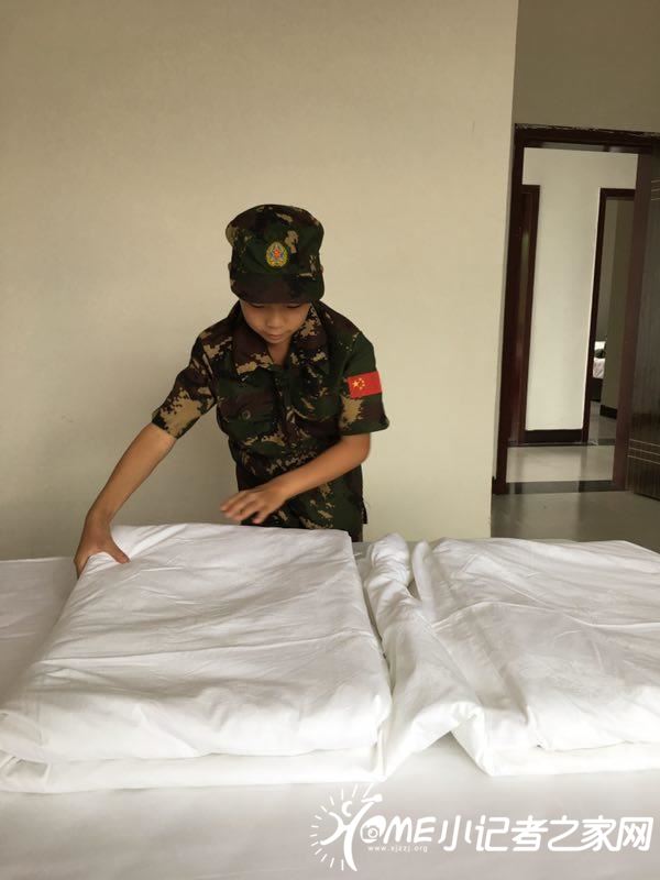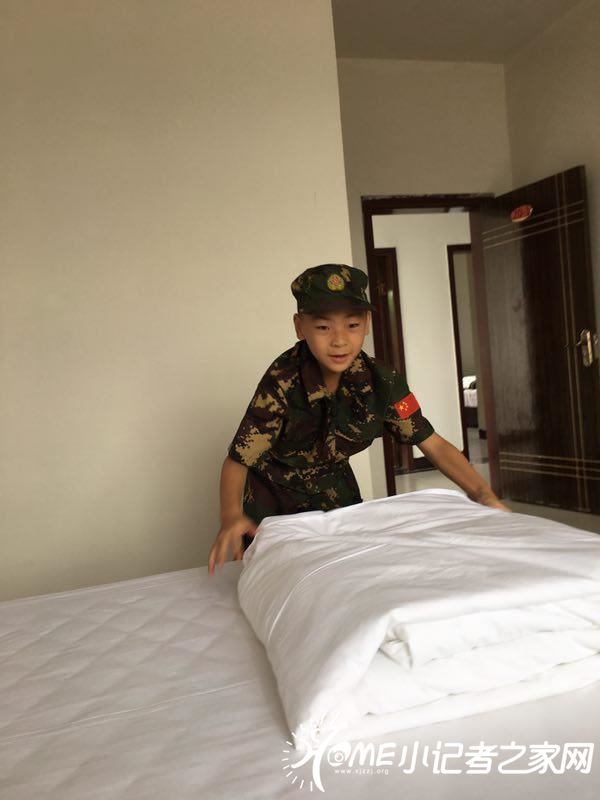 夏令营第一天坐车来到贵州度假区,首先进行了吃饭仪式训练,教官组织唱歌,喊口号“鹰击长空、建出军雷、刻苦训练、还我军魂”(两遍),第二遍叫“必杀”!下午,进行了叠被子训练,最开始大家叠得不好扁扁的,后面多叠了几次渐渐变好了。