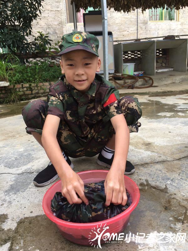 在训练营里大家要跑步,下地去种菜秧、拔草,去烟草厂整理烟草叶,自己洗衣服。还玩了真人CS,攀岩等。攀岩时起初有点害怕,当教官把安全绳给我套好的时候,我脚开始发抖了,但是我心里一直安慰自己,不要怕,我是男子汉,不就是攀岩吗,没什么大不了的。一切准备就绪我抓着石头一个一个向上攀爬,虽然遗憾没有到达顶峰,但是获得了第二名的好成绩也很高兴。